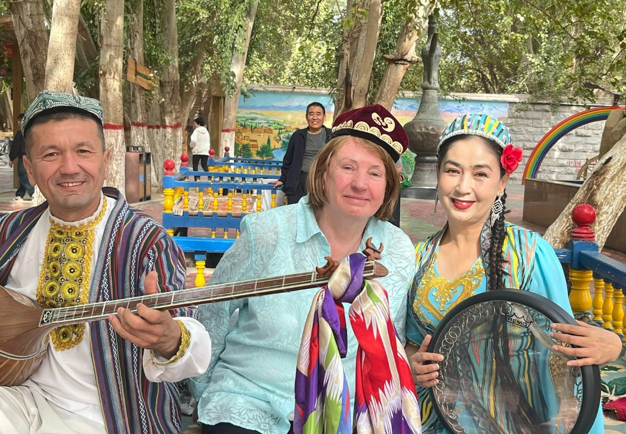 金秋十月,新疆風(fēng)光如畫,迎來八方游客。10月3日,吐魯番葡萄溝景區(qū)內(nèi),澳大利亞80歲的游客麥迪娜沉醉于木卡姆的悠揚(yáng)旋律中,隨后在導(dǎo)游祖力菲亞·艾買提的陪伴下,啟程前往烏魯木齊。