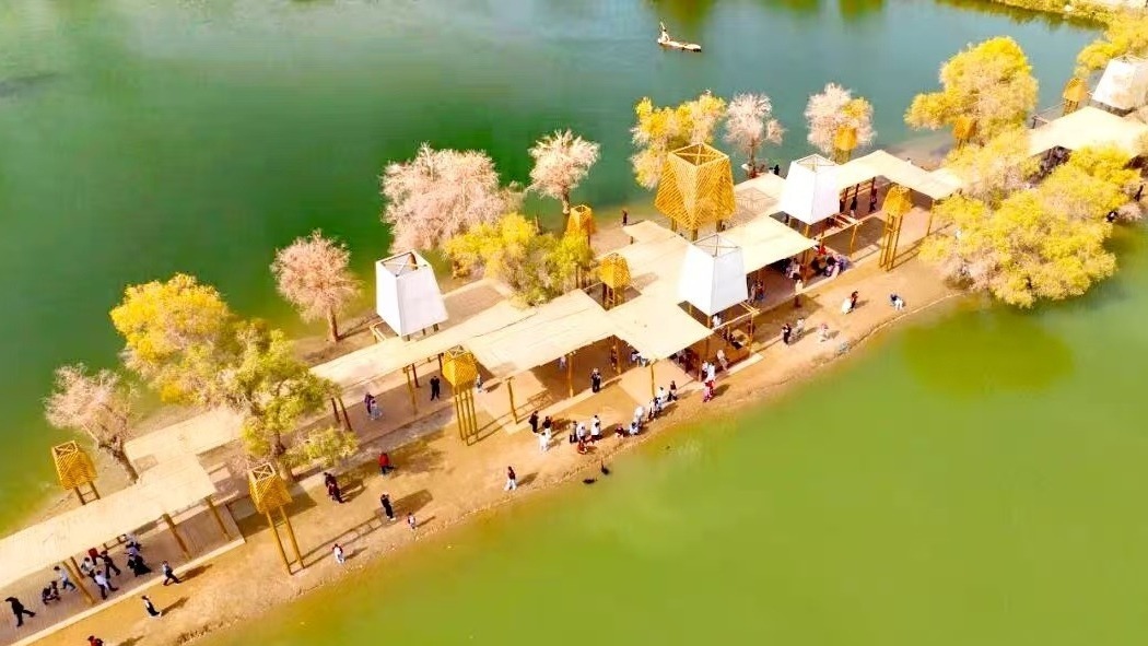 10月4日,游客在博湖縣境內(nèi)的博斯騰湖大河口景區(qū)體驗(yàn)娛樂項(xiàng)目。國慶中秋假期,博湖縣推出“文旅+生態(tài)”“文旅+民俗”系列活動(dòng),吸引各地游客紛至沓來。