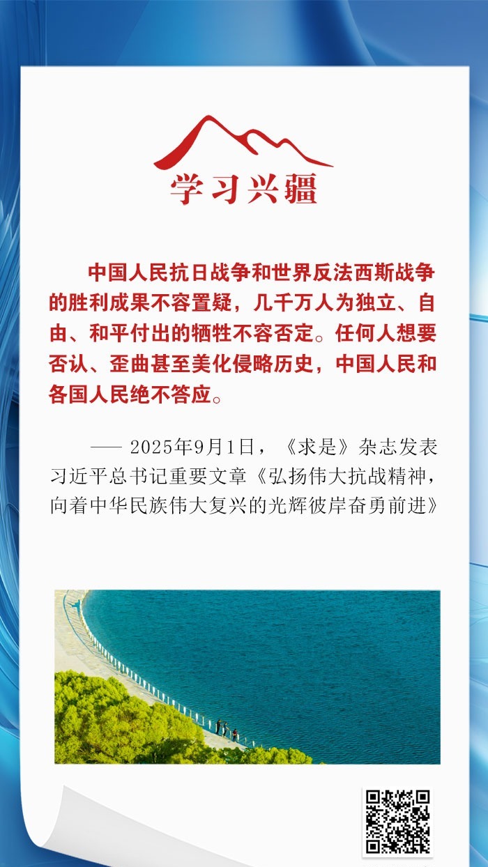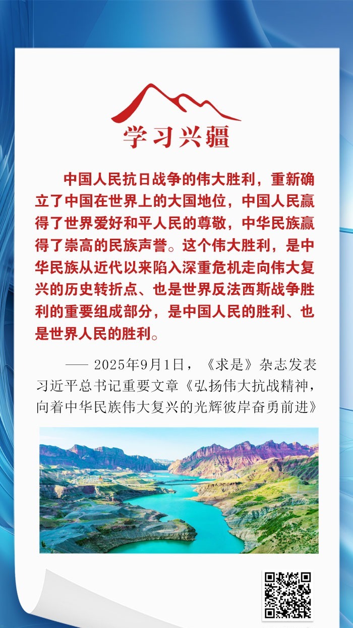 愛國,是人世間最深層、最持久的情感。愛國主義是中華民族精神的核心,激勵著一代又一代中華兒女為祖國發(fā)展繁榮而不懈奮斗。今年是中國人民抗日戰(zhàn)爭暨世界反法西斯戰(zhàn)爭勝利80周年,九三閱兵在即,讓我們重溫習(xí)近平總書記關(guān)于愛國的重要論述,不斷增強(qiáng)做中國人的志氣、骨氣、底氣。
