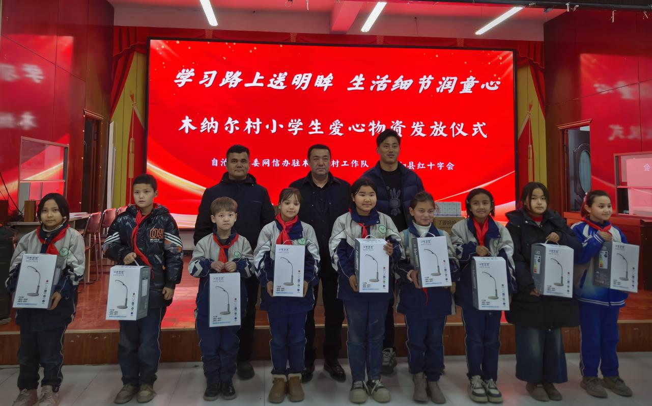 學(xué)習(xí)路上送明眸 生活細(xì)節(jié)潤(rùn)童心——自治區(qū)黨委網(wǎng)信辦駐木納爾村工作隊(duì)舉行愛心物資發(fā)放儀式