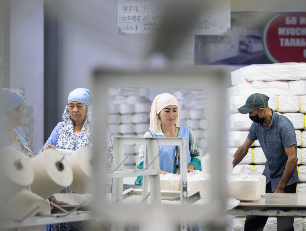 塔方員工在中塔合作項(xiàng)目丹加拉農(nóng)業(yè)紡織產(chǎn)業(yè)園的成衣車間工作。