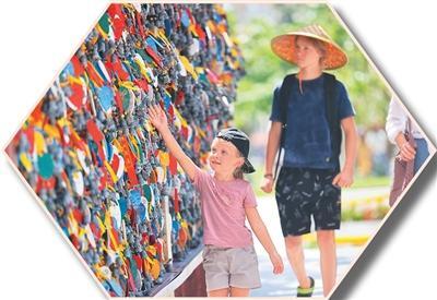 外國游客在海南三亞南山文化旅游區(qū)游玩。陳文武攝(新華社發(fā))