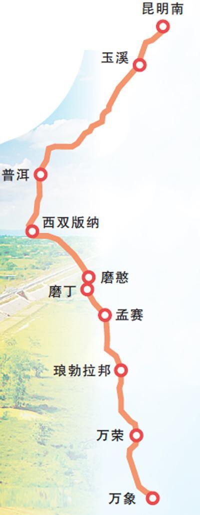 中老鐵路主要站點(diǎn)線(xiàn)路圖。