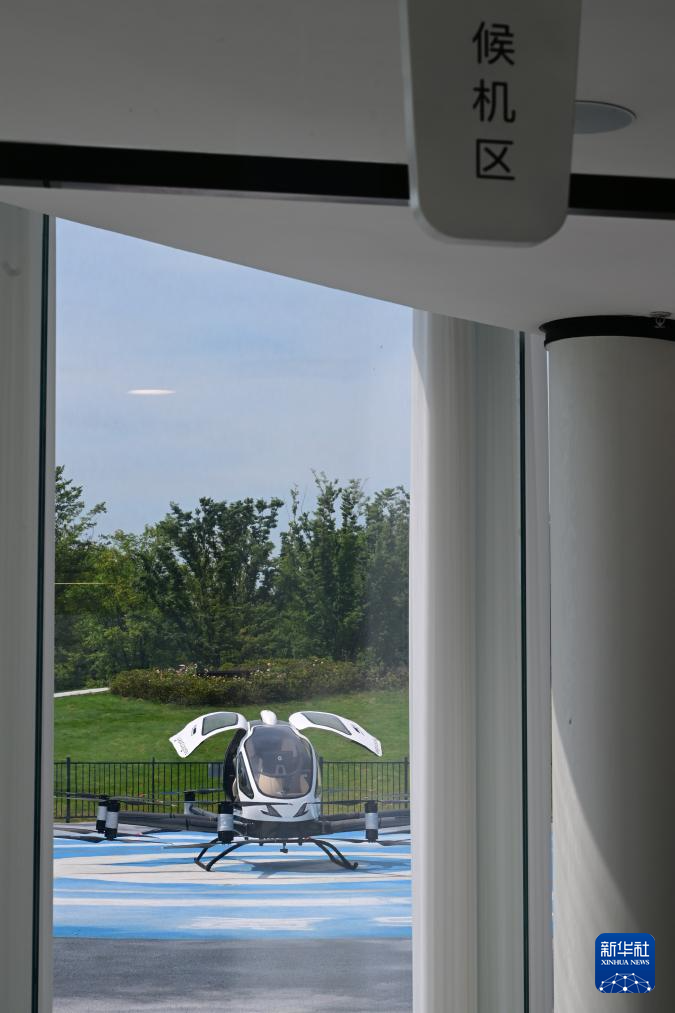 7月2日,一架電動垂直起降飛行器(eVTOL)停放在合肥城市空中交通樞紐港。新華社記者 周牧 攝