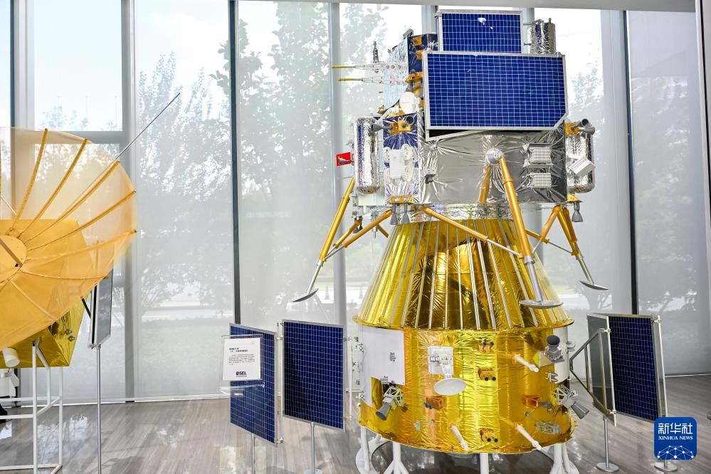 這是在深空探測實(shí)驗(yàn)室拍攝的嫦娥六號月球探測器模型(6月30日攝)。新華社記者 張鋮 攝
