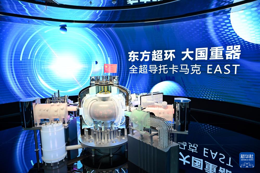 這是在聚變創(chuàng)新展覽館拍攝的全超導(dǎo)托卡馬克核聚變實(shí)驗(yàn)裝置(EAST)模型(7月1日攝)。新華社記者 張鋮 攝