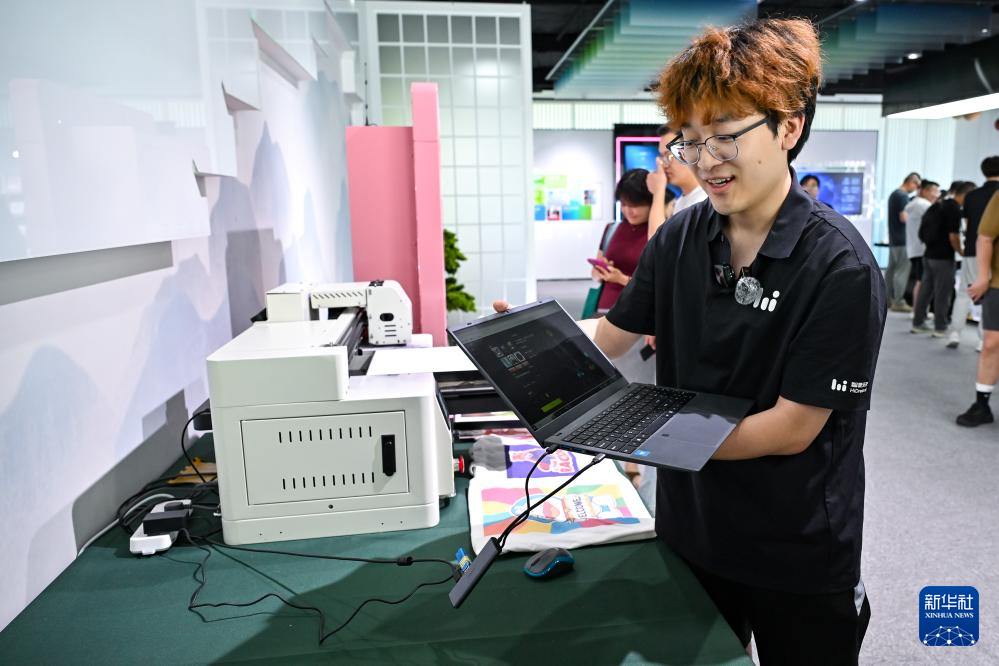 7月2日,一名工作人員在人工智能初創(chuàng)企業(yè)智象未來(合肥)信息技術(shù)有限公司介紹AI文生圖功能。新華社記者 張鋮 攝