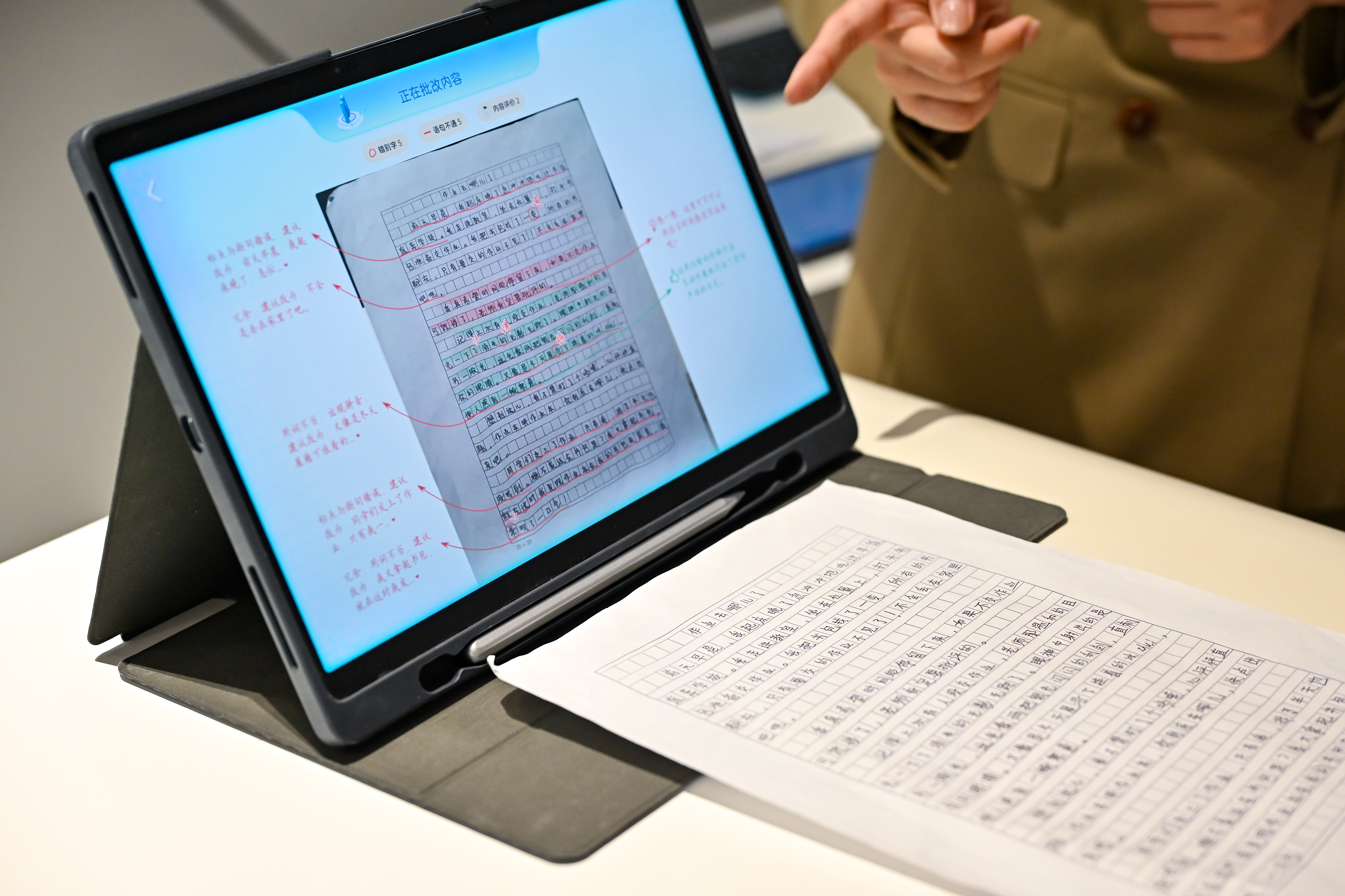 在科大訊飛人工智能體驗(yàn)館內(nèi),智慧課堂的演示吸引了不少參觀者駐足?!氨热缋蠋熤v解圖形時(shí),屏幕能同步動(dòng)態(tài)演示,學(xué)生能更直觀地理解抽象概念?!笨拼笥嶏w人工智能體驗(yàn)館的工作人員介紹,訊飛智慧課堂融合AI多模態(tài)技術(shù)和星火大模型。讓教師通過(guò)“智慧語(yǔ)音筆”聯(lián)通“智慧黑板”,實(shí)現(xiàn)隨講隨寫(xiě);學(xué)生們則能以動(dòng)態(tài)可視化的方式開(kāi)展學(xué)習(xí)。此外,學(xué)生課后還可以借助AI交互式答疑,自主提問(wèn)、思考、理解,提升學(xué)習(xí)效率。