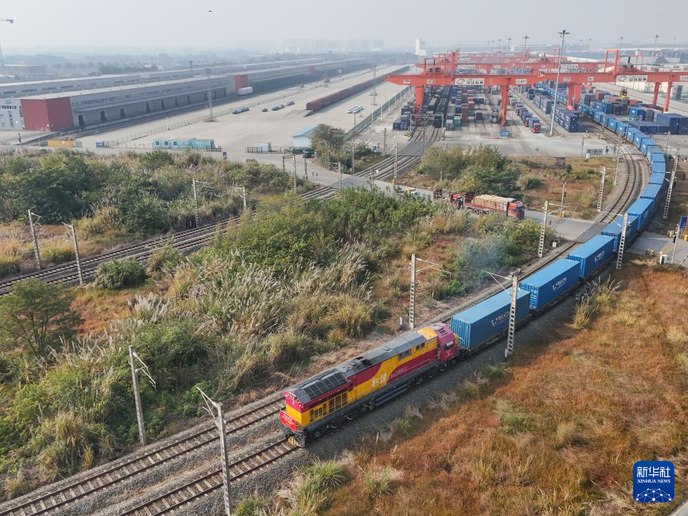 11月28日,X8086次中歐班列從成都青白江區(qū)國際鐵路港駛出。新華社記者 王曦 攝
