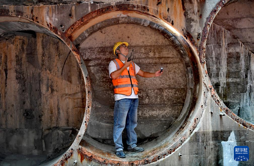 12月5日,工人在三亞河口通道工程項(xiàng)目現(xiàn)場(chǎng)檢查貫通管相鄰管節(jié)狀態(tài)。新華社記者趙穎全攝