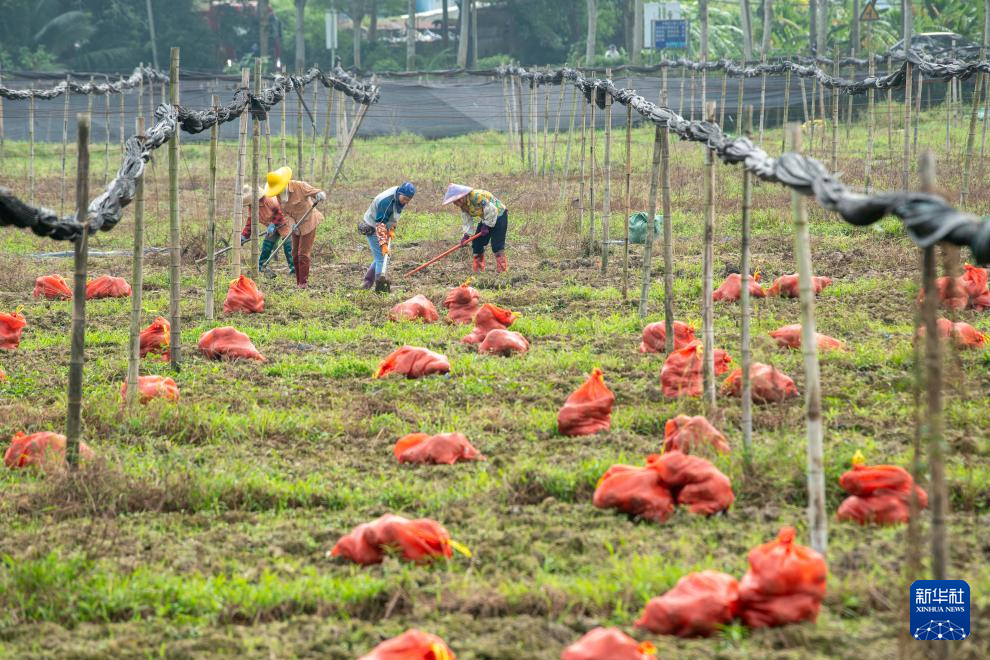 12月7日,海南省瓊海市嘉積鎮(zhèn)紅星社區(qū)農(nóng)民在種植魔芋。新華社發(fā)(蒙鐘德 攝)