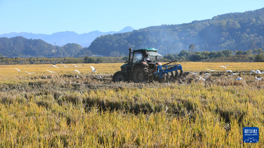 12月7日,云南省騰沖市和順鎮(zhèn)大莊村農(nóng)民駕駛農(nóng)機翻耕稻田,準(zhǔn)備種植冬季馬鈴薯。新華社發(fā)(龔祖金 攝)