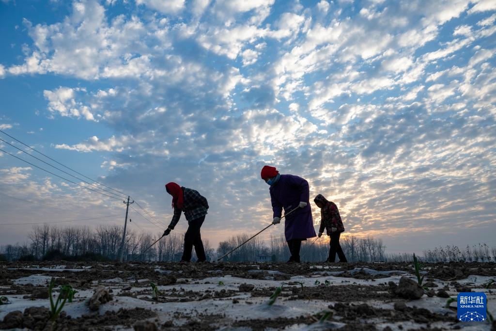 12月7日,農(nóng)民在河南省商丘市夏邑縣會亭鎮(zhèn)張橋村大蒜種植基地勞作。新華社發(fā)(王高超攝)