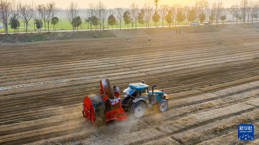 12月6日,在河南省商丘市睢縣河集鄉(xiāng)吳樓村一處中藥材種植基地,農(nóng)戶采收白術(shù)。新華社發(fā)(徐澤源攝)