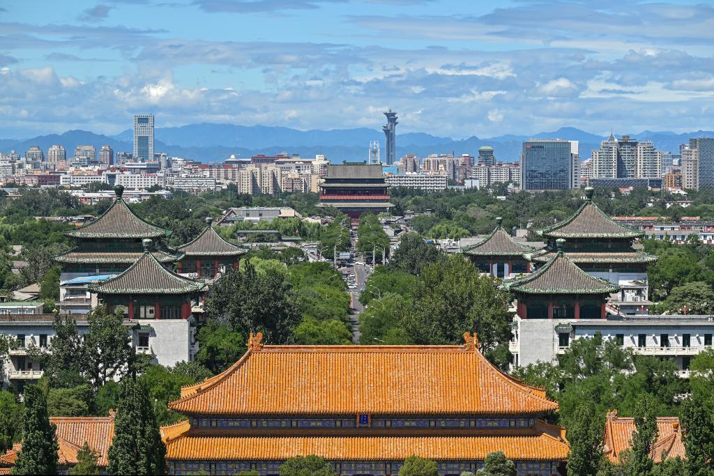 這是2024年8月12日在景山上拍攝的北京中軸線風(fēng)光。