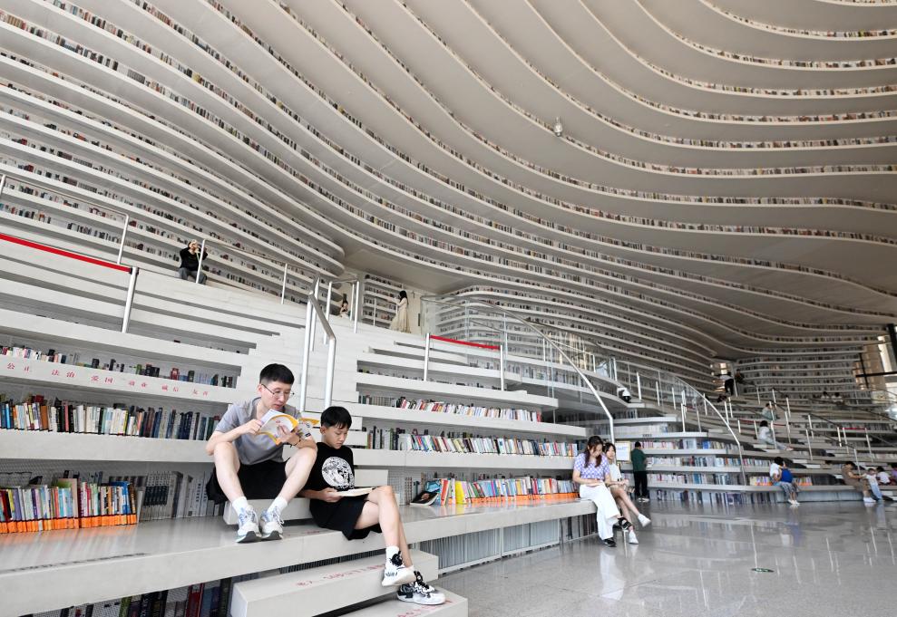 2024年8月27日,市民在天津?yàn)I海新區(qū)圖書(shū)館內(nèi)閱讀。有著“濱海之眼”之稱的濱海新區(qū)圖書(shū)館位于天津?yàn)I海文化中心,目前已成為天津?yàn)I海新區(qū)的文化“新地標(biāo)”。