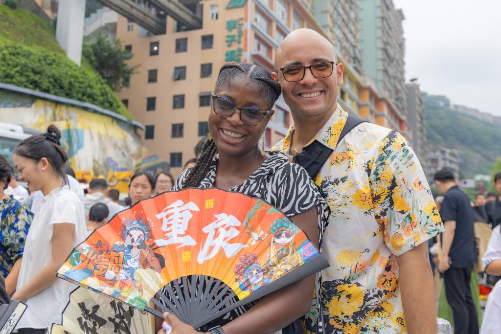 2025年10月3日,加拿大游客克里斯提安(左)和家人在重慶市渝中區(qū)李子壩游玩。近年來(lái),不斷優(yōu)化的入境政策為境外游客赴華提供了更多便利,“來(lái)華旅游攻略”“赴華購(gòu)物清單”等成為國(guó)外社交媒體熱門搜索關(guān)鍵詞,“China Travel”的熱度延續(xù)至今。山城重慶憑借其獨(dú)特的城市景觀和風(fēng)土人情,吸引不少外國(guó)游客前來(lái)品嘗美食、打卡景點(diǎn)、體驗(yàn)文化。