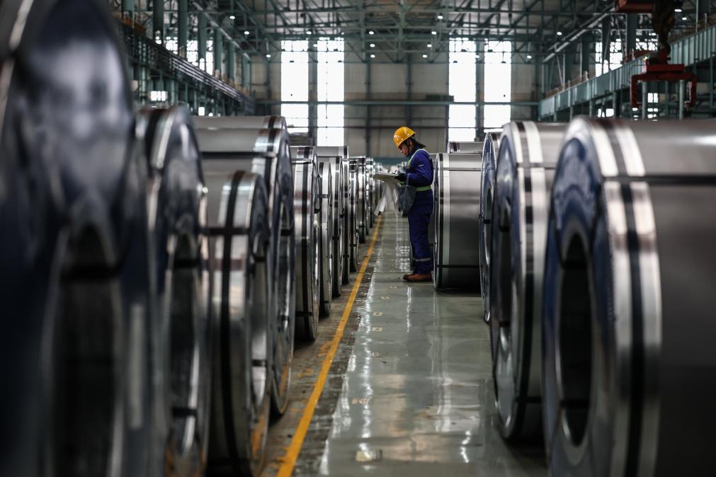 2025年12月6日,工作人員在本鋼板材冷軋總廠第三冷軋廠成品庫核對清點產(chǎn)品。新華社記者 潘昱龍 攝