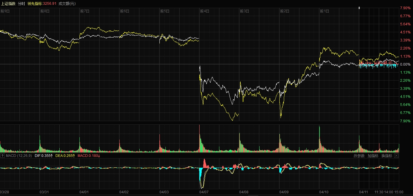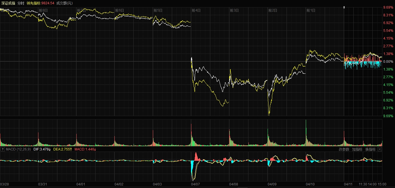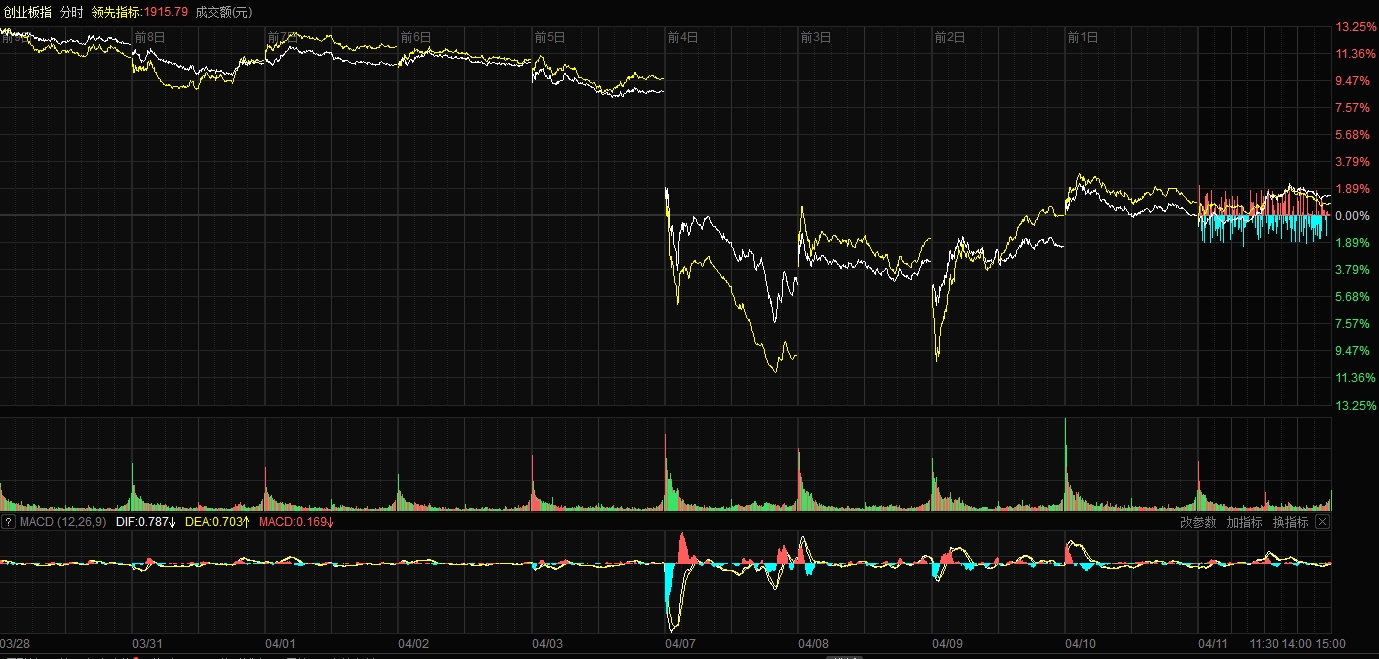 天山網(wǎng)-新疆日報訊(記者康顥嚴(yán)報道)4月11日,A股三大指數(shù)延續(xù)反彈態(tài)勢。截至收盤,上證指數(shù)漲0.45%,報收3238.23點;深證成指漲0.82%,報收9834.44點;創(chuàng)業(yè)板指漲1.36%,報收1926.37點。滬深兩市成交額13487億元,較昨日縮量2608億元。