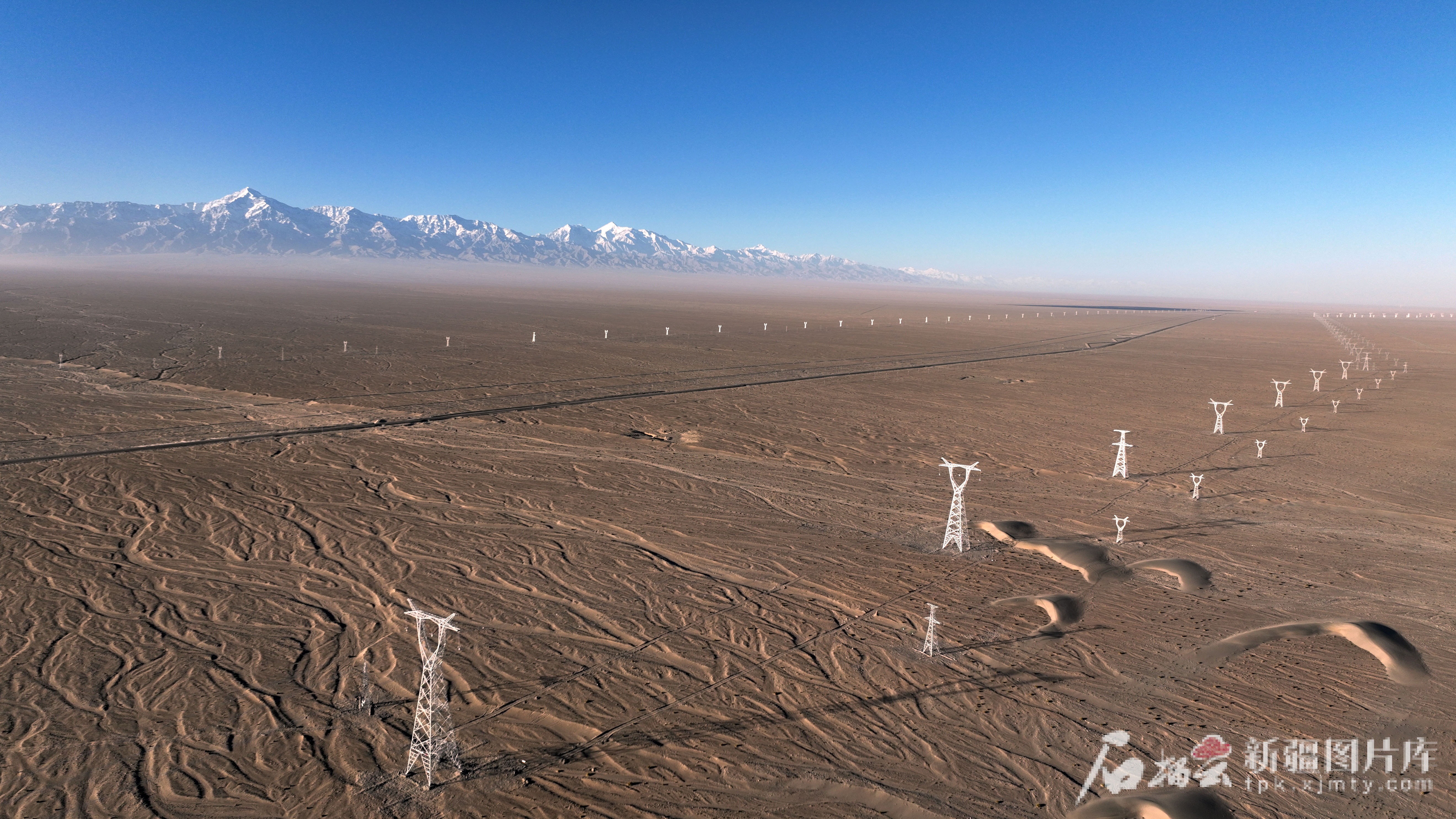 天山觀察丨“電龍”環(huán)塔 勢(shì)貫?zāi)辖?/p>