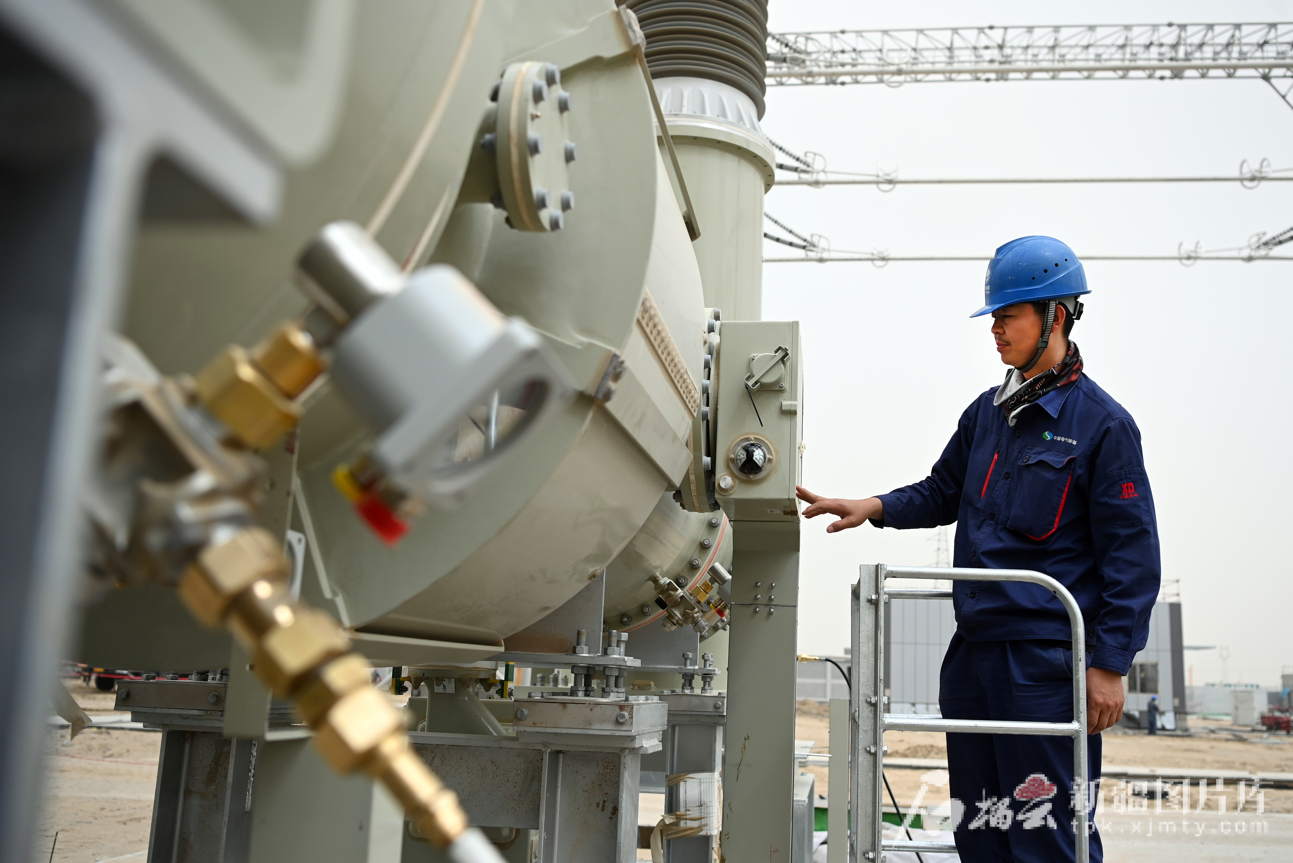 2025年4月25日,電力員工在且末750千伏變電站對(duì)電器設(shè)備進(jìn)行檢查。馬元 攝