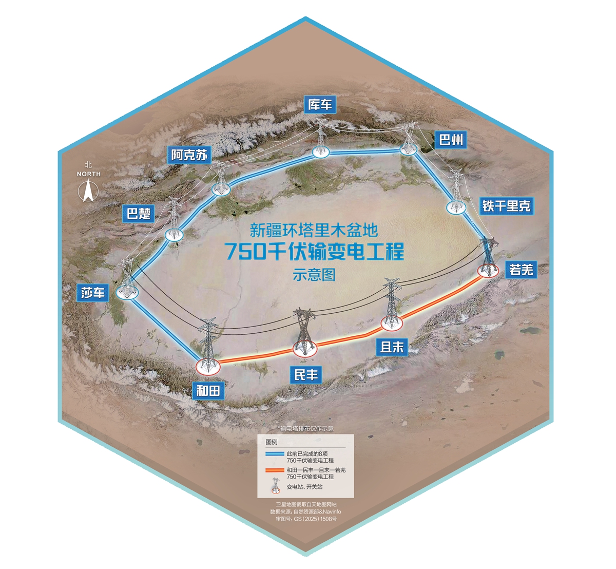 “疆電外送”第四條直流通道起點(diǎn)和環(huán)塔工程在若羌縣有了交集。環(huán)塔工程為清潔能源的外送和本地消納搭建起高效通道。