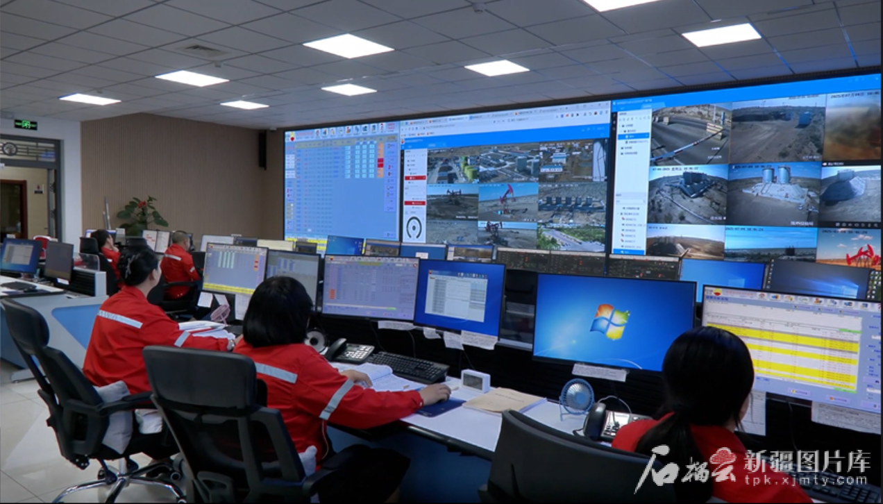 7月14日,中國(guó)石油新疆油田分公司(數(shù)智技術(shù)公司)正通過(guò)監(jiān)控大屏查看油氣生產(chǎn)現(xiàn)場(chǎng)。姜力攝