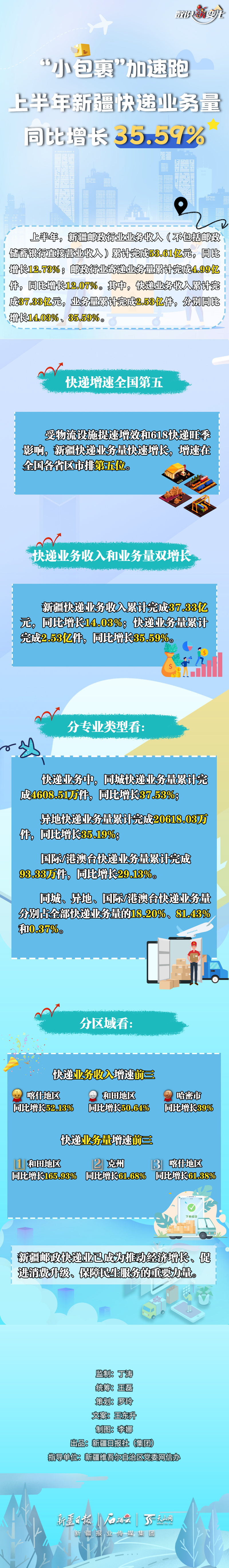 數(shù)說“新”變化丨“小包裹”加速跑 上半年新疆快遞業(yè)務(wù)量同比增長35.59%