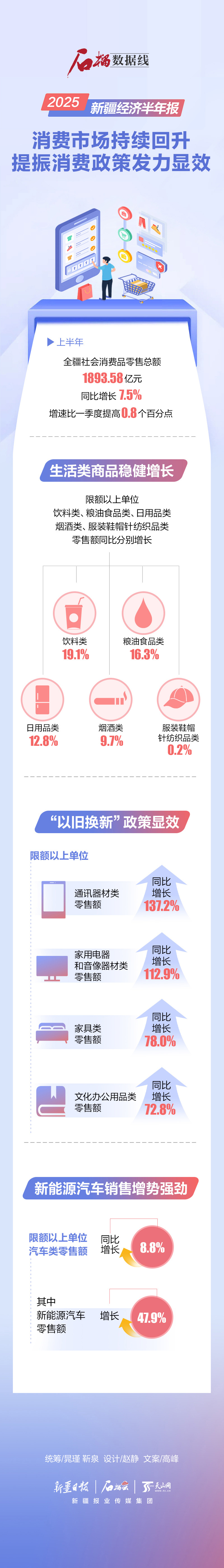 2025年上半年新疆經(jīng)濟(jì)數(shù)據(jù)丨消費(fèi)市場(chǎng)持續(xù)回升,提振消費(fèi)政策發(fā)力顯效