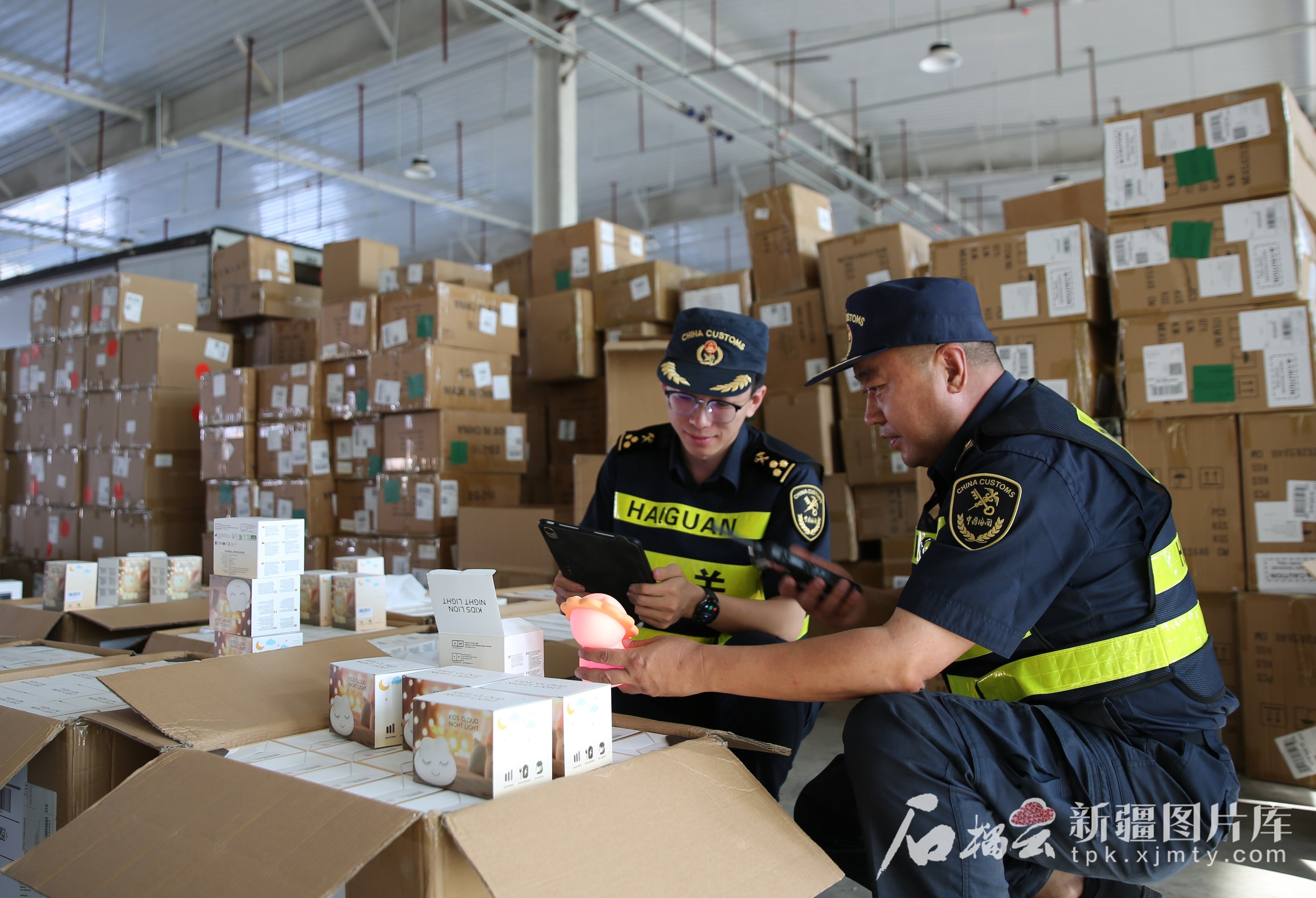 7月17日,阿拉山口海關(guān)關(guān)員在查驗(yàn)進(jìn)口貨物。張棟 攝
