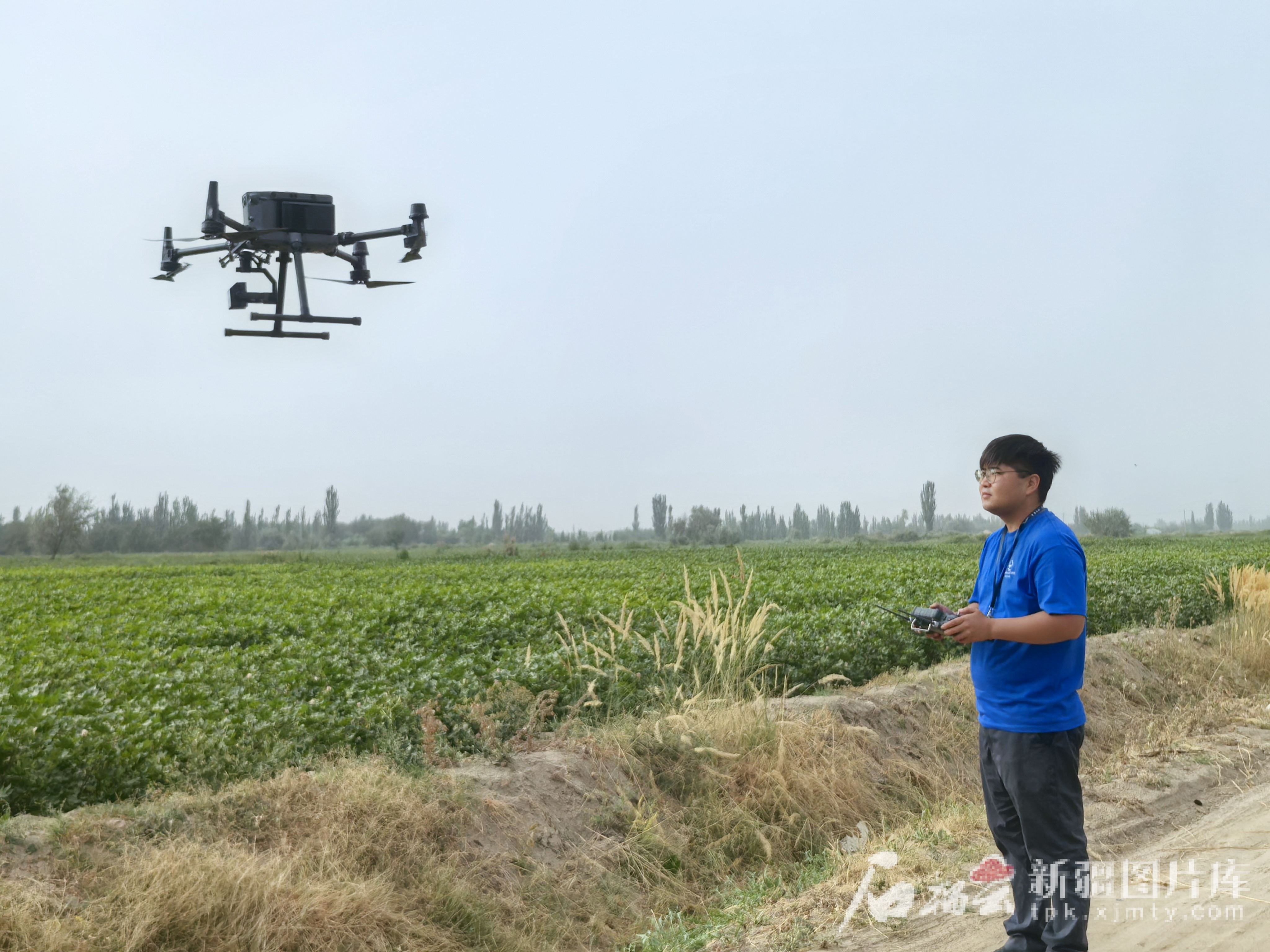 7月18日,新疆川月農(nóng)業(yè)科技有限公司無人機(jī)飛手在用高光譜相機(jī)采集棉田生長期數(shù)據(jù)。葛平助 供圖
