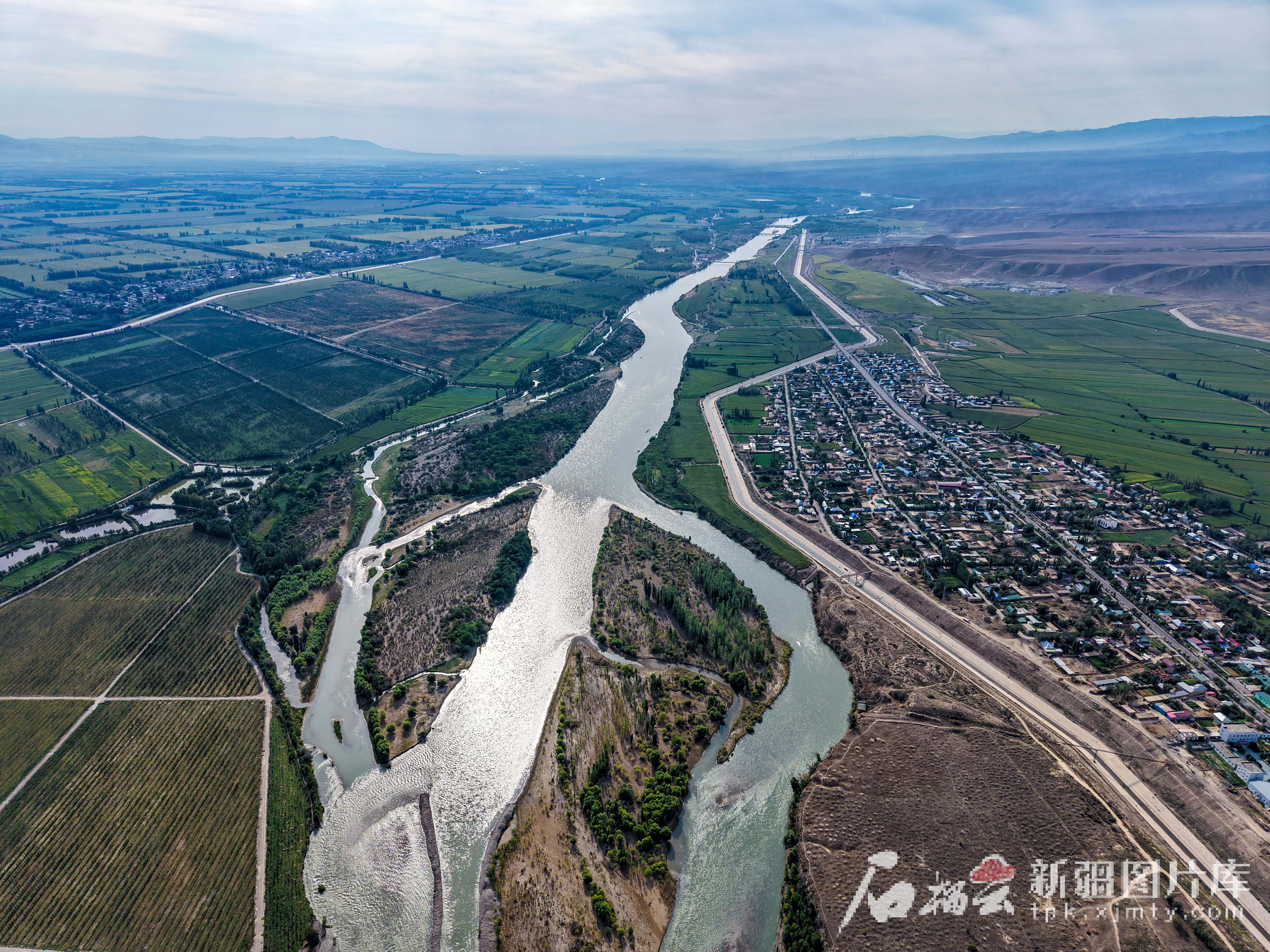 8月8日,航拍伊犁河察布查爾錫伯自治縣段。(無人機(jī)攝)