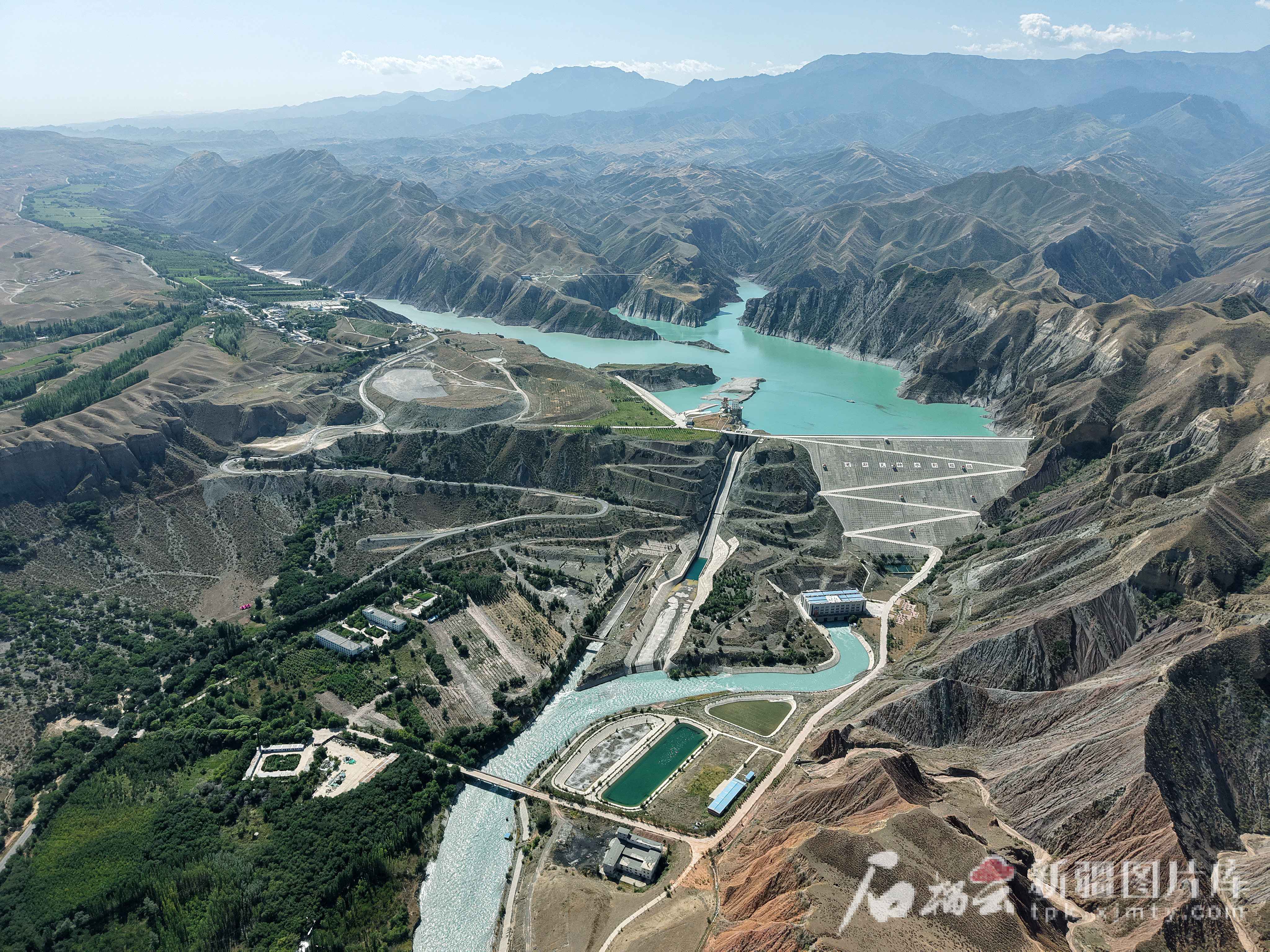 8月10日,俯瞰肯斯瓦特水利樞紐全景。
