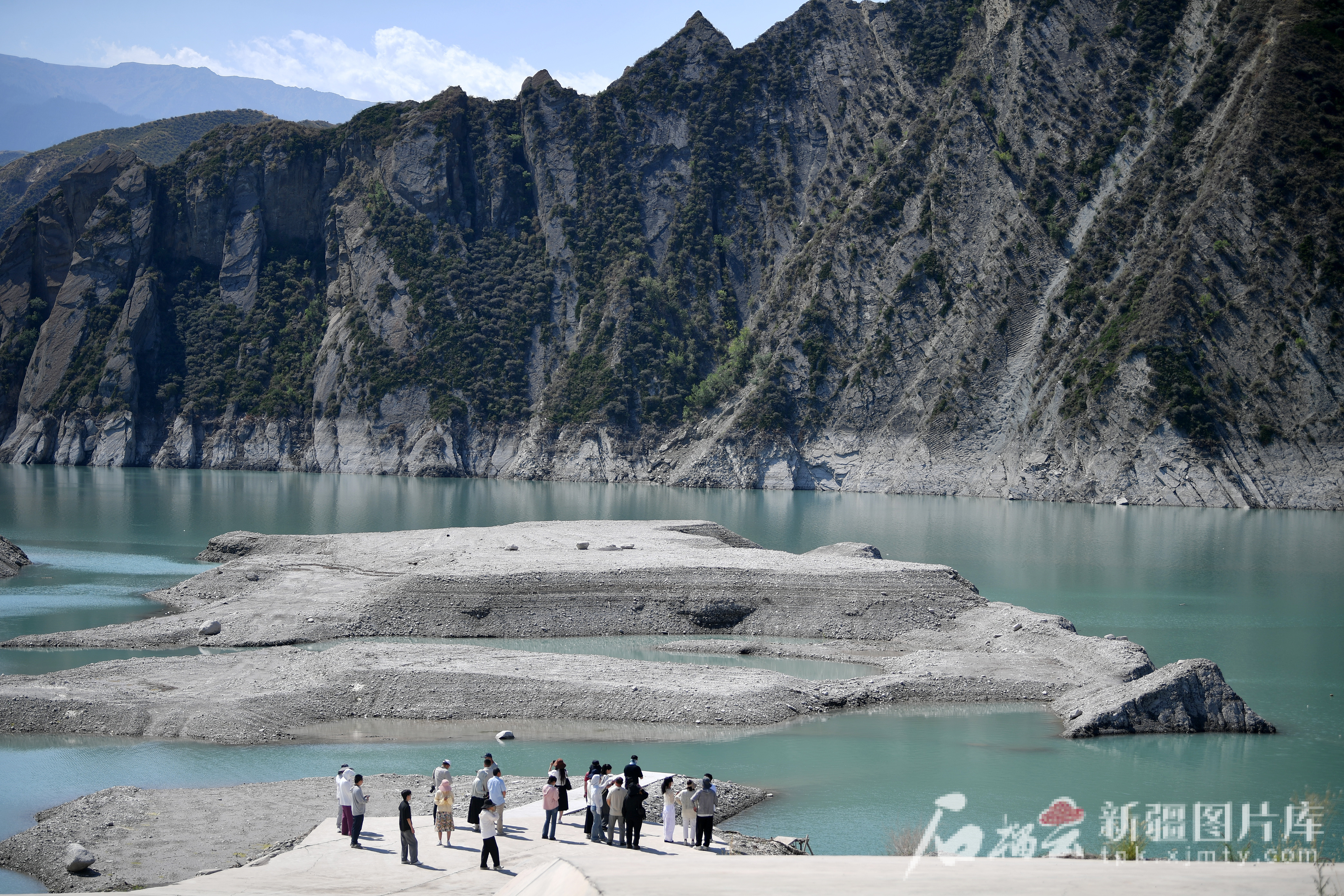 8月10日,游客在肯斯瓦特水利樞紐下游的峽谷游玩拍攝。