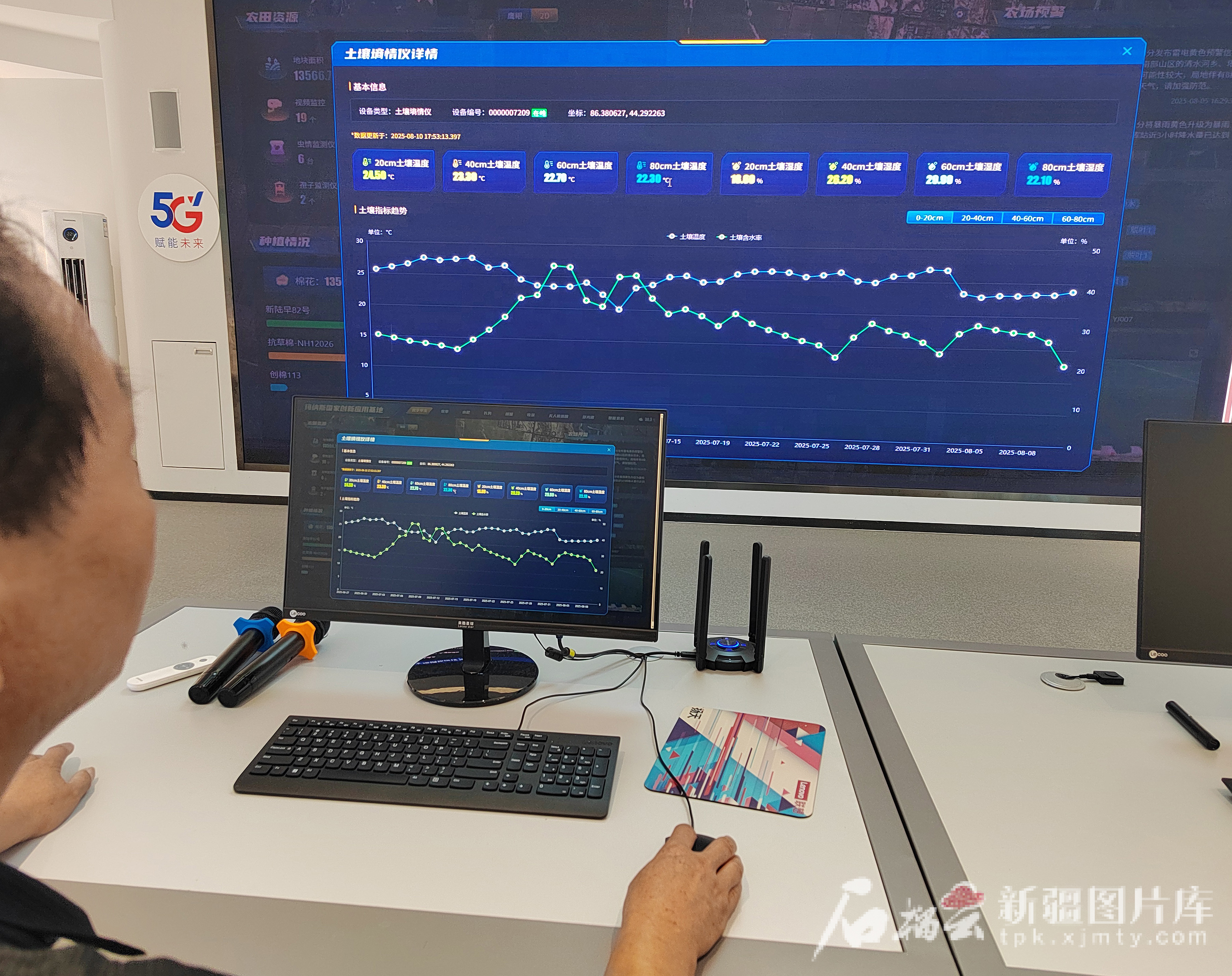 8月10日,工作人員通過瑪納斯國家數(shù)字種植業(yè)創(chuàng)新應(yīng)用基地管理平臺查看土壤墑情。