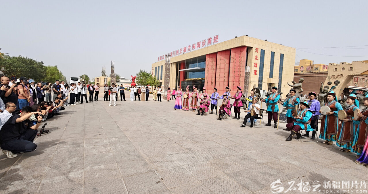 9月9日,“砥礪奮進七十載 天山南北譜華章”大型集中采訪活動采訪團記者在尉犁縣興平鎮(zhèn)達西村拍攝演員表演。