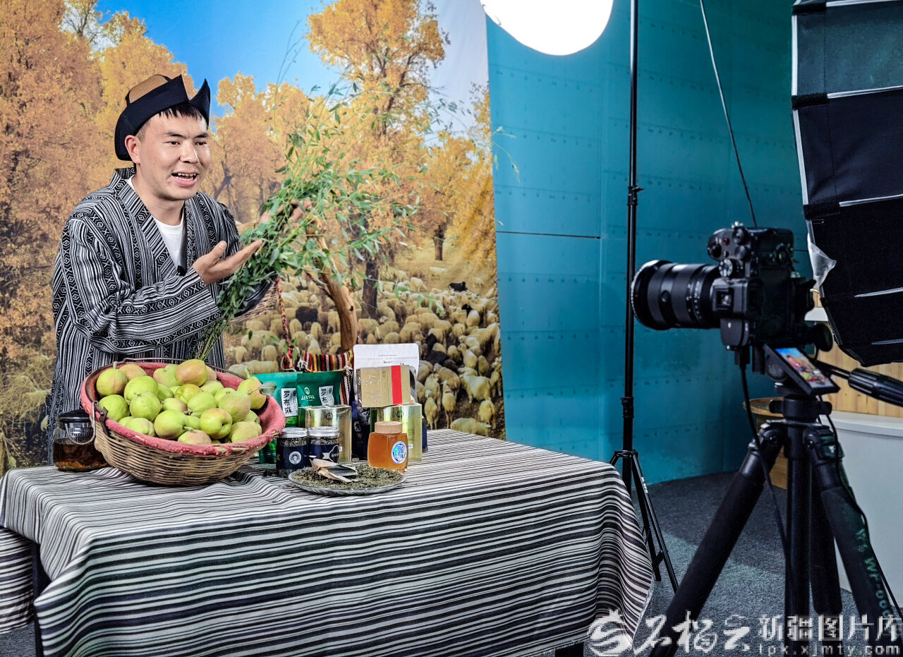 9月9日,村民在尉犁縣興平鎮(zhèn)達西村直播基地,直播銷售該村出產(chǎn)的農(nóng)副產(chǎn)品。