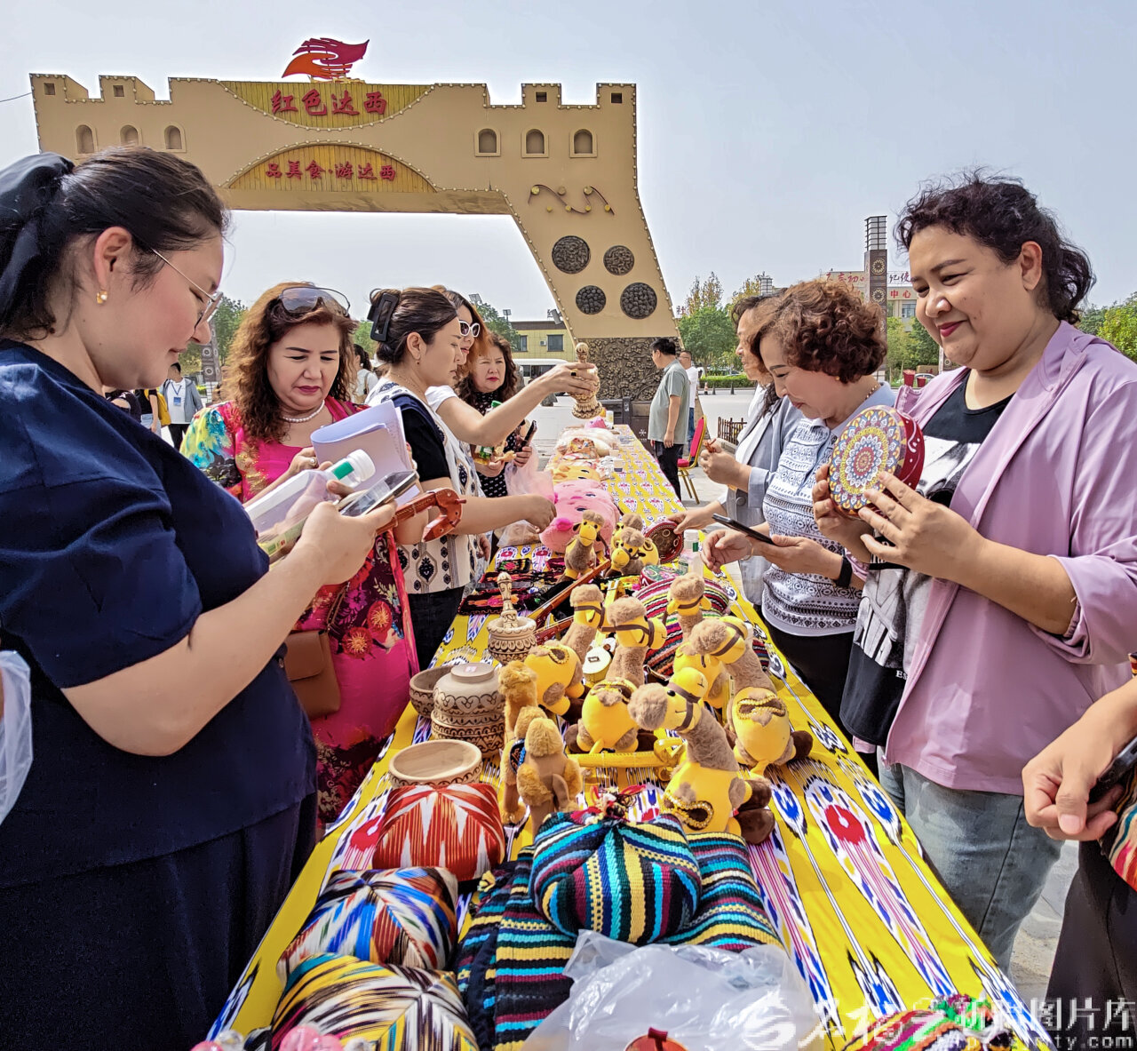 9月9日,游客在尉犁縣興平鎮(zhèn)達西村購買旅游紀(jì)念品。