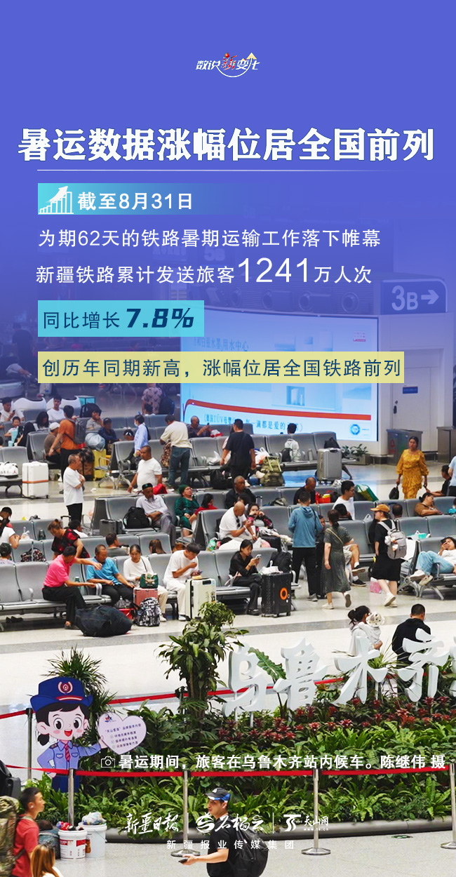 今年以來,新疆鐵路部門牢牢把握高質(zhì)量發(fā)展的首要任務(wù),持續(xù)挖潛增能提效,拓展延伸服務(wù),創(chuàng)新保障機制。今年前8個月,新疆鐵路客、貨運輸數(shù)據(jù)怎樣?取得了怎樣的成績?本期《數(shù)說"新"變化》一起來看看。