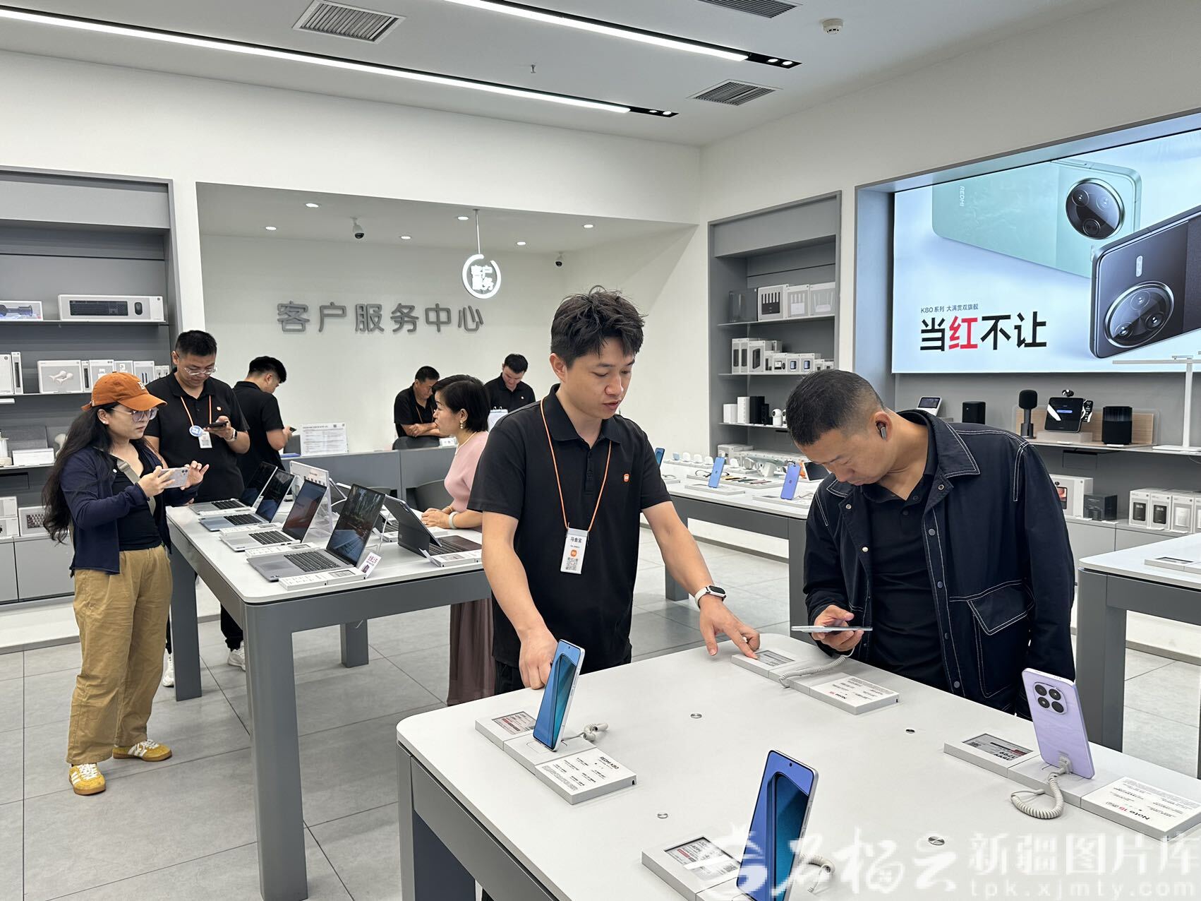 9月9日,在伊寧市萬榮購物廣場一家手機(jī)銷售店,顧客正在挑選新款手機(jī)。孫伍健攝