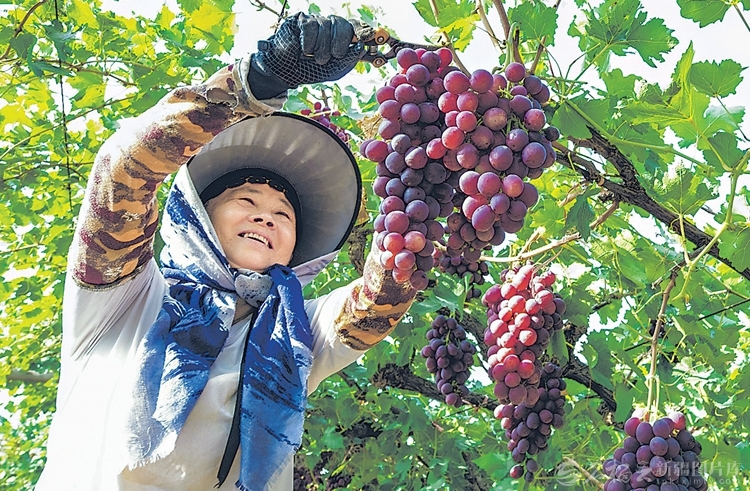 昌吉市種植戶在采摘葡萄。何龍 攝