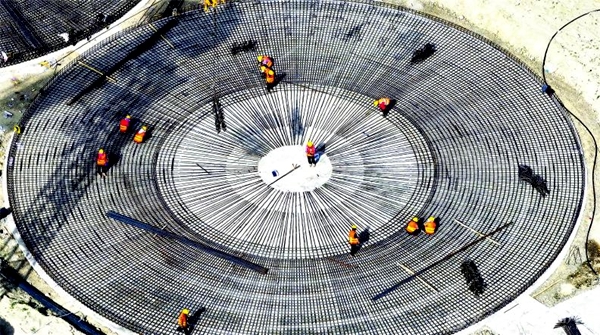工人在位于鐵門關(guān)經(jīng)濟技術(shù)開發(fā)區(qū)的新疆綠洲生物科技有限公司特種玉米深加工項目現(xiàn)場作業(yè)(10月2日無人機攝)。謝江林攝