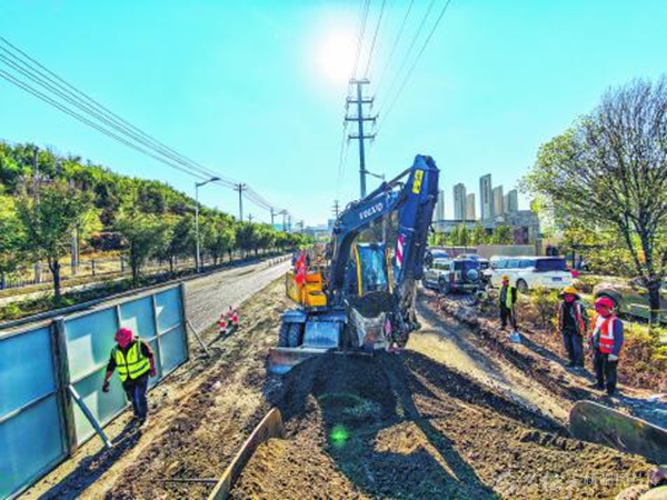 10月4日,挖掘機在烏魯木齊市東泉路提升改造工程施工現(xiàn)場作業(yè)。施工人員各司其職,全力推進項目建設(shè)。天山網(wǎng)-新疆日報記者周鵬攝