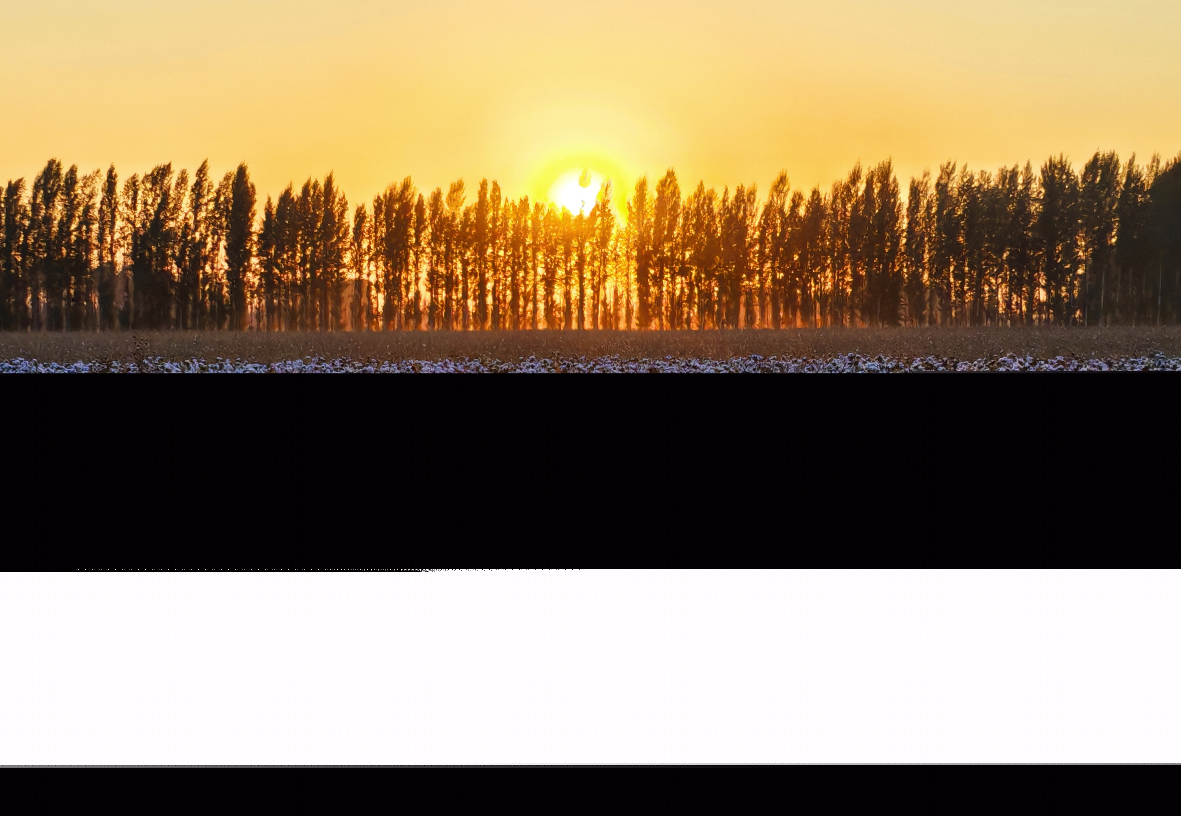 10月4日,沙灣市安集海鎮(zhèn)和平新村的棉田在夕陽的映襯下美麗無比。