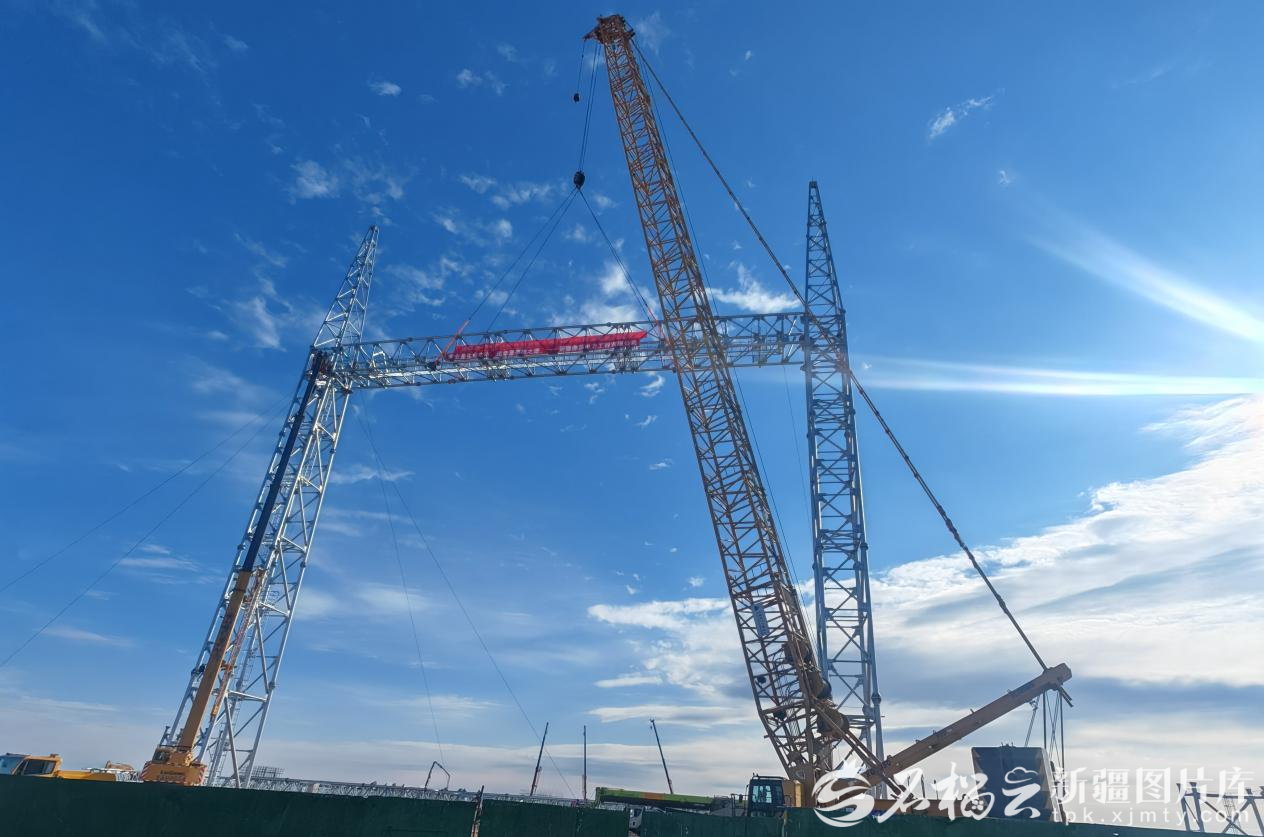 10月15日,玫瑰泉750千伏變電站開展構(gòu)架吊裝。李建彬攝