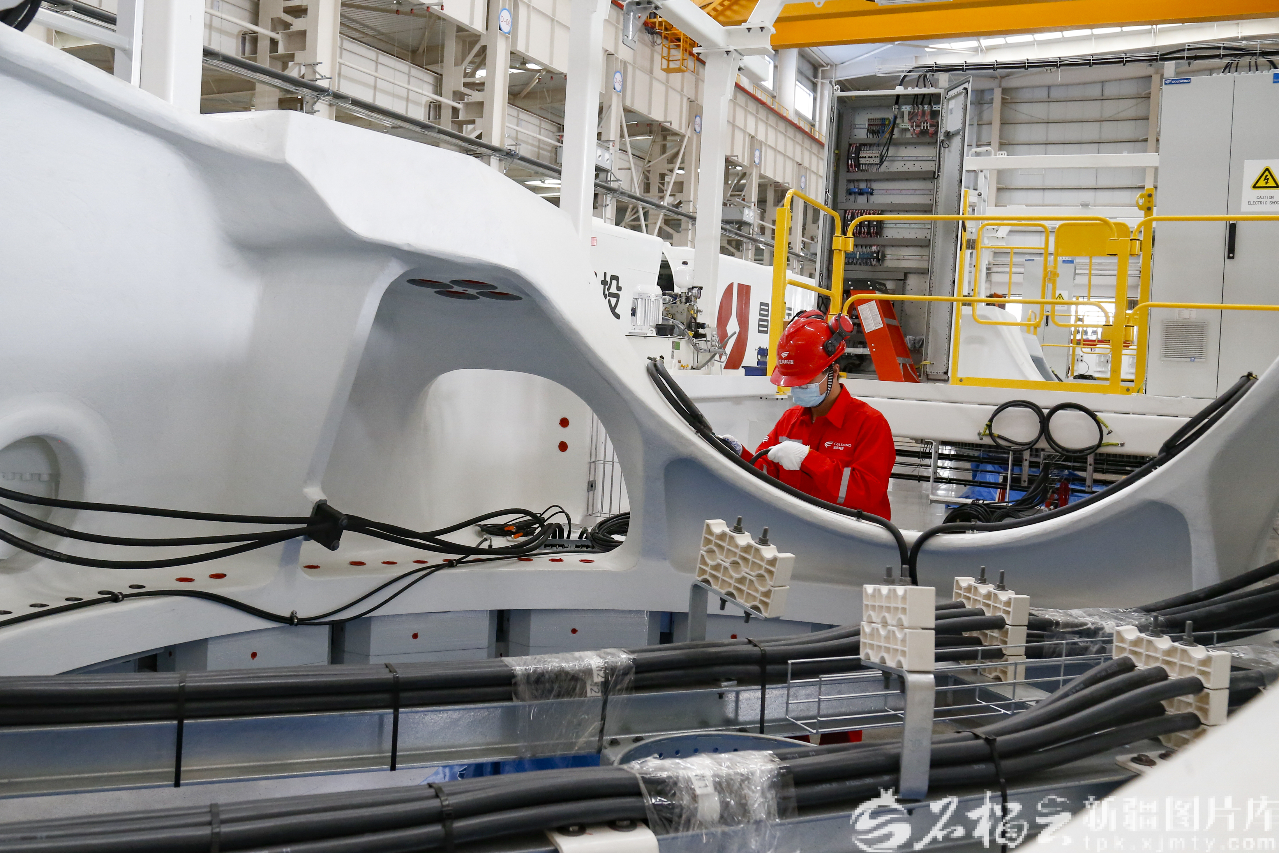 在金風(fēng)科技達坂城產(chǎn)業(yè)基地,工作人員在對設(shè)備進行安裝(資料圖)。天山網(wǎng)-新疆日報記者 謝龍攝