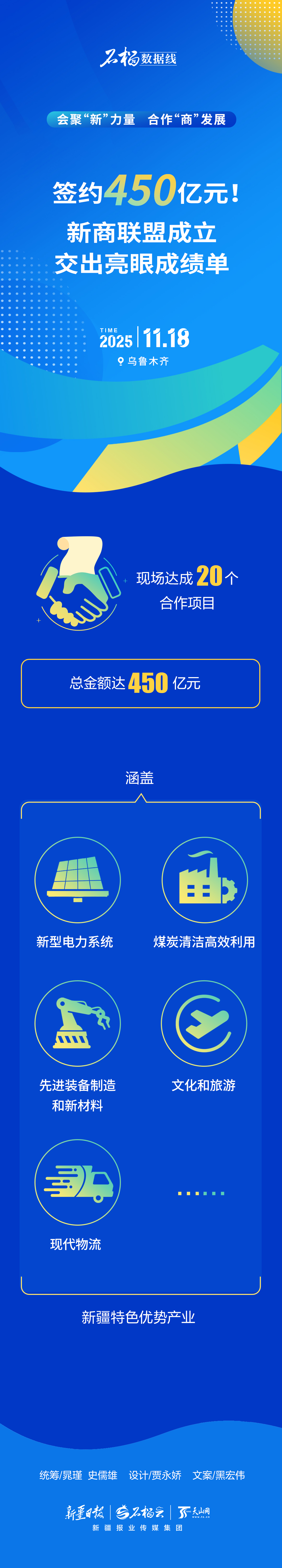 現(xiàn)場(chǎng)達(dá)成20個(gè)合作項(xiàng)目,總金額達(dá)450億元,涵蓋新型電力系統(tǒng)、煤炭清潔高效利用、先進(jìn)裝備制造和新材料、文化和旅游、現(xiàn)代物流等新疆特色優(yōu)勢(shì)產(chǎn)業(yè)。