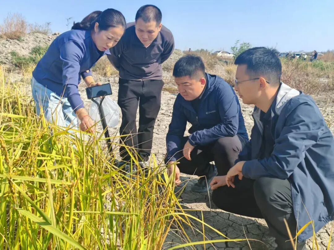 9月16日,福建援疆前方指揮部三明分指揮部干部人才在瑪納斯縣廣東地鄉(xiāng)袁家莊村?富硒水稻示范種植基地查看水稻長勢。福建援疆前方指揮部三明分指揮部供圖