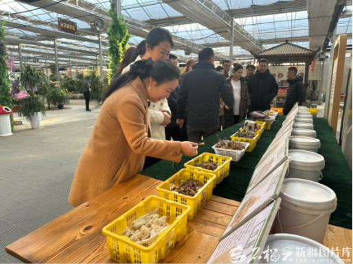 青年企業(yè)家在疏勒縣“魯疆情”食用菌生態(tài)科技示范園參觀食用菌產(chǎn)品。馬珉攝