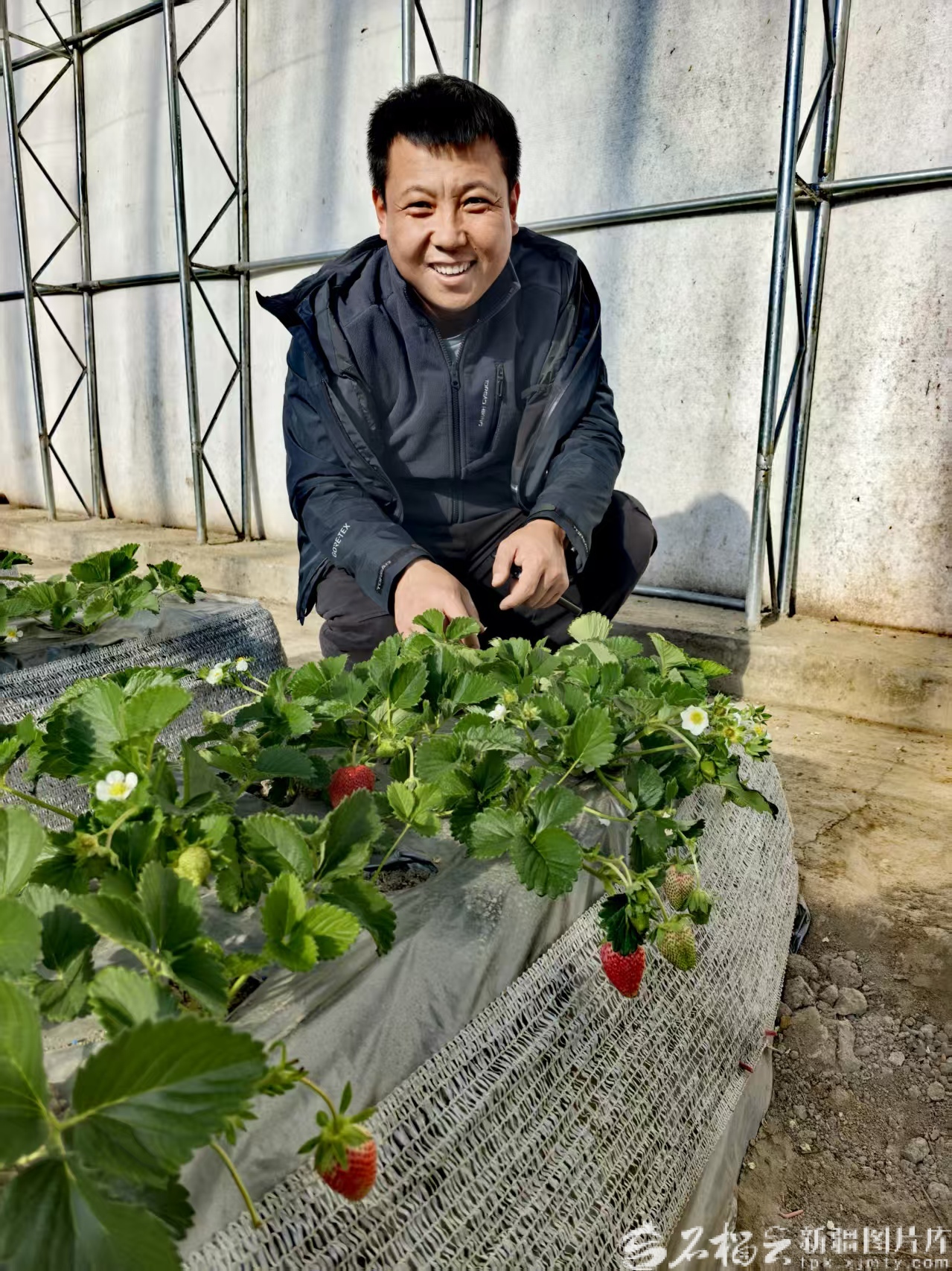 在新疆成功試種出曾獲“中國廊坊草莓創(chuàng)新發(fā)展大會”金獎的新品種——香野后,唐凱十分喜悅。天山網(wǎng)-新疆日報記者 馬帛宇攝
